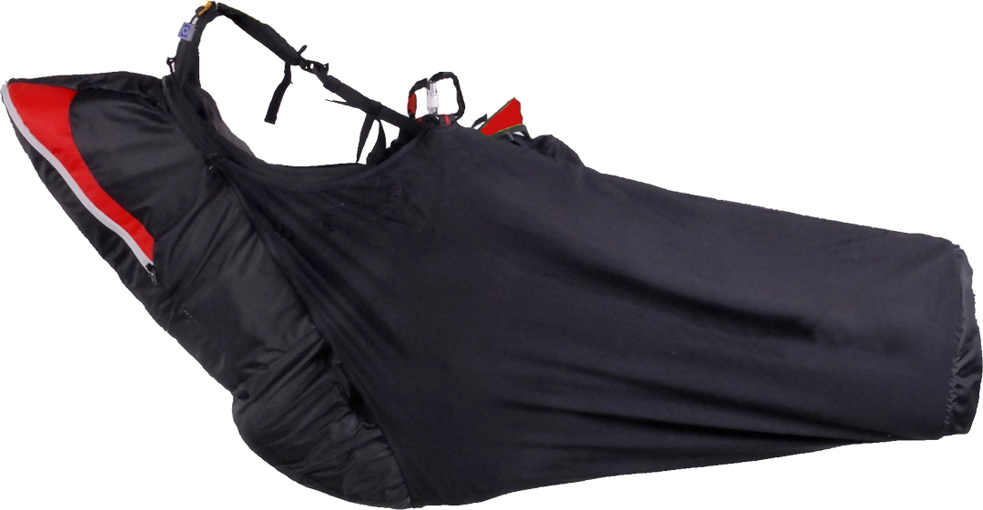 Cocon avec container pour secours intégré (attache aux maillons principaux), cockpit porte instrument, poche dorsale arrière profilée (274g) ainsi qu’un moussbag de 12cm (540g).